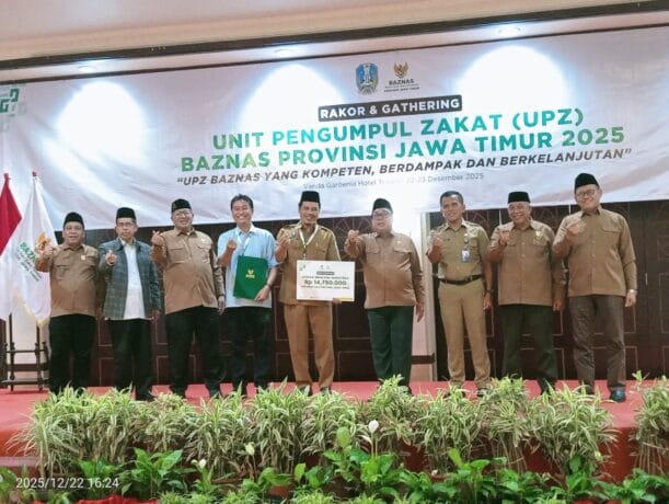 Pojokkampung,Mojokerto- Badan Amil Zakat Nasional (Baznas)Provinsi Jawa Timur menggelar rapat koordinasi dan gathering dengan semua Unit Pengumpul Zakat (UPZ) di hotel Vanda, Kecamatan Trawas, Kabupaten Mojokerto,Senin(22/12/2025)