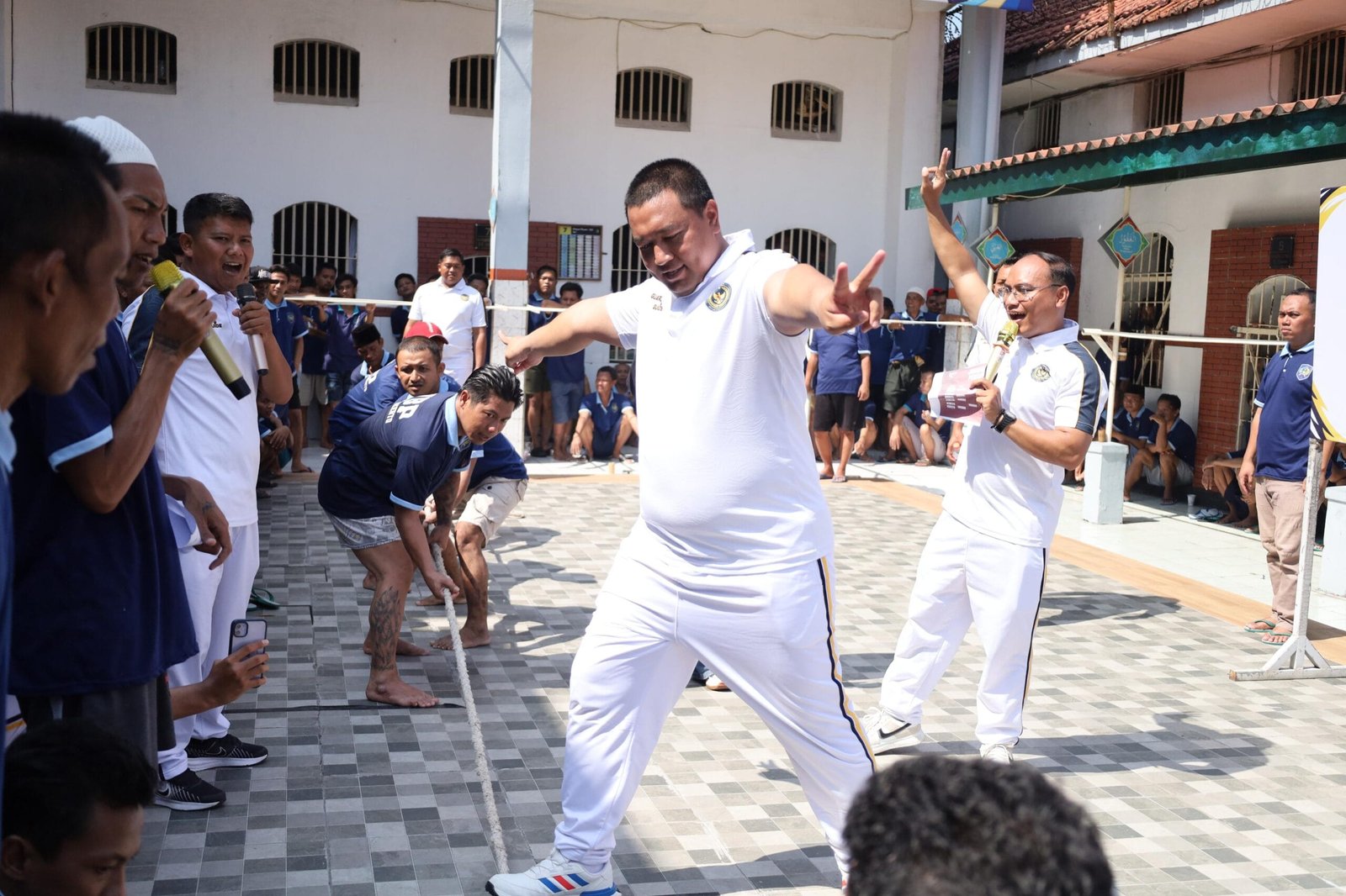 Lomba tarik tambang mempertemukan pertandingan seru antara pegawai melawan pegawai, serta warga binaan melawan sesama warga binaan dari berbagai blok hunian.