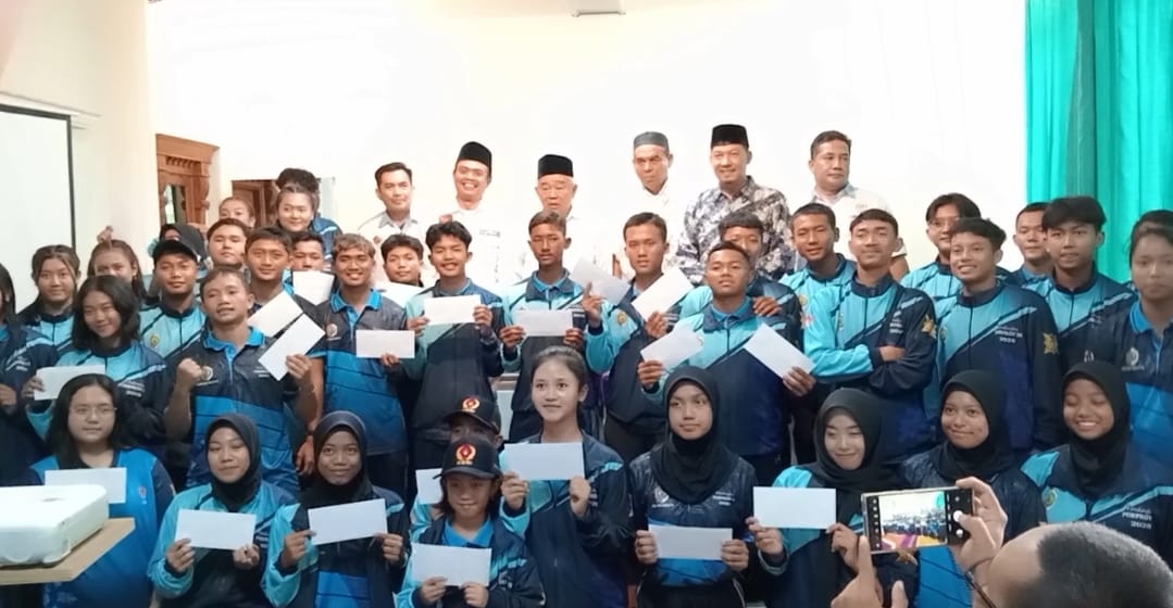 Pojokkampung,Mojokerto -Ratusan Atlet Kabupaten Mojokerto peraih medali pada ajang Pekan Olahraga Provinsi (Porprov) Jawa Timur IX tahun 2025 menerima bonus uang saku dari Pengasuh Pondok Pesantren (Ponpes) Amanatul Ummah, KH Asep Syaifuddin Chalim,Jum’at(15/8/2025) di Kampus Universitas KH Abdul Chalim JL.Raya Tirtowening Pacet no.17 Bendunganjati Kecamatan Pacet,Kabupaten Mojokerto.