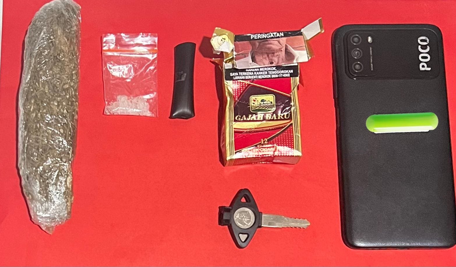 Dari Pelaku, petugas menyita 32,19 gram paket ganja kering dan 0,83 gram paket sabu serta sejumlah barang bukti lain berupa sedotan plastik, bekas bungkus rokok, satu unit handphone, dan satu unit sepeda motor.