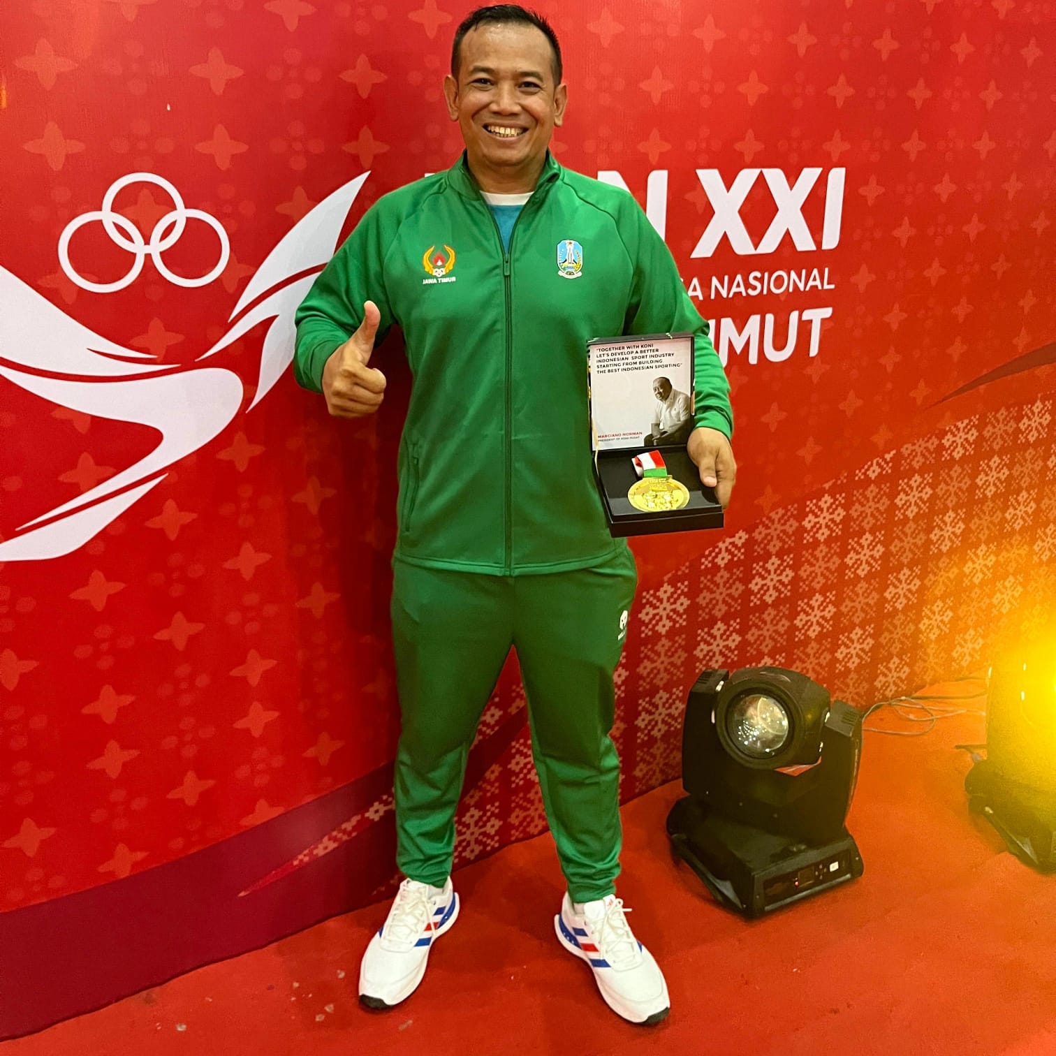 Wira Prasetya Catur ketua Umum Kickboxing Jawa Timur saat PON XXI Sumut-ACEH(Putri Maharani/pojokkampungnews.com)